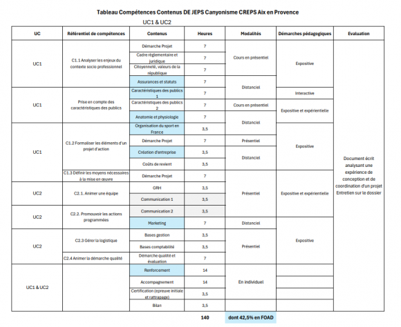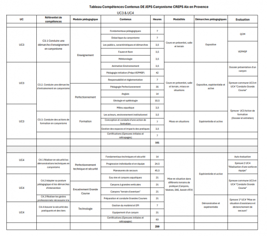 Le bloc UC3 et UC4 du DEJEPS Canyonisme est organisé autour de 5 modules spécifiques :