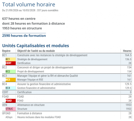 Le DESJEPS Direction de structures et projets sportifs une formation en alternance de 17 mois de 2513 heures : 637 heures en centre et 2009 heures en structure(s).